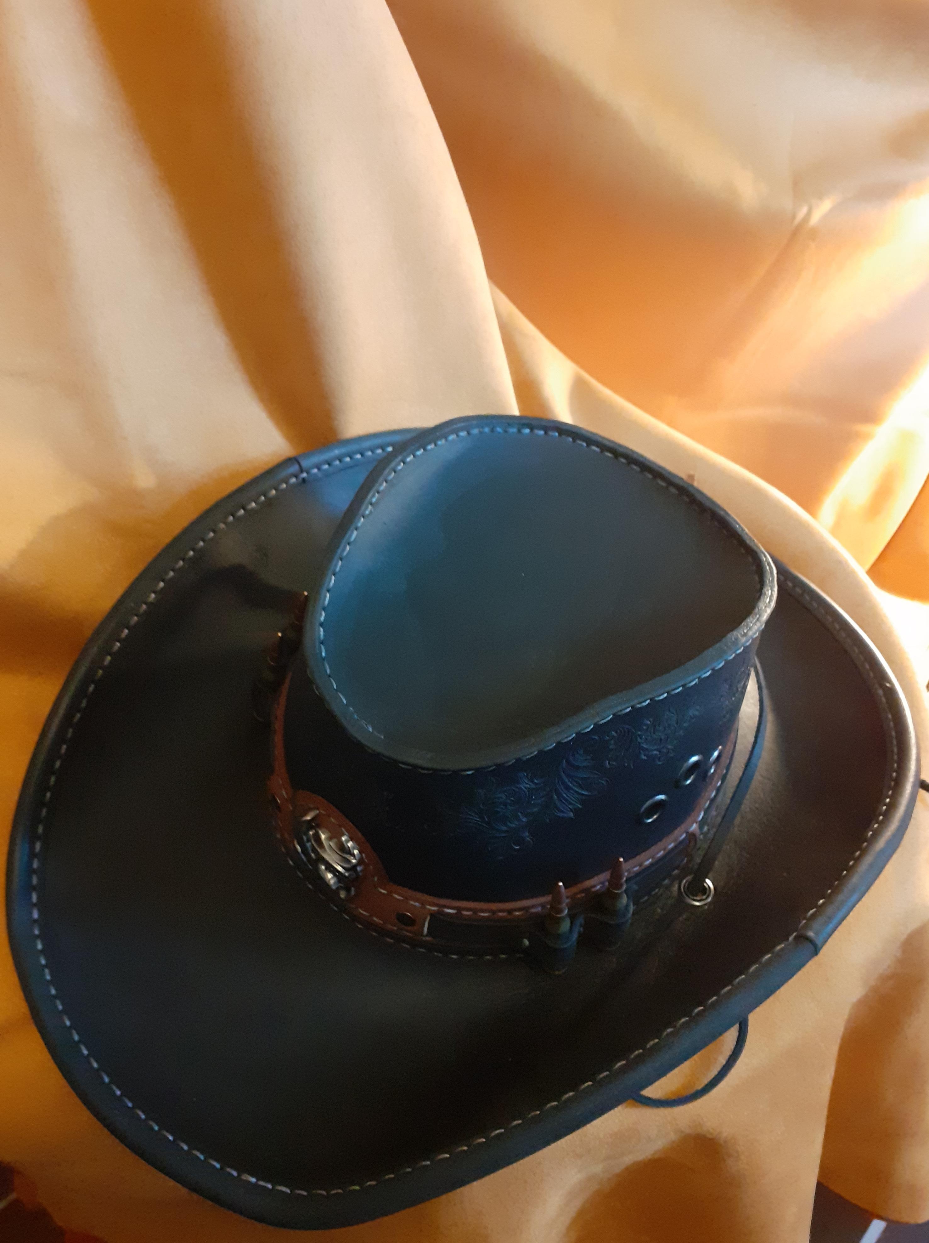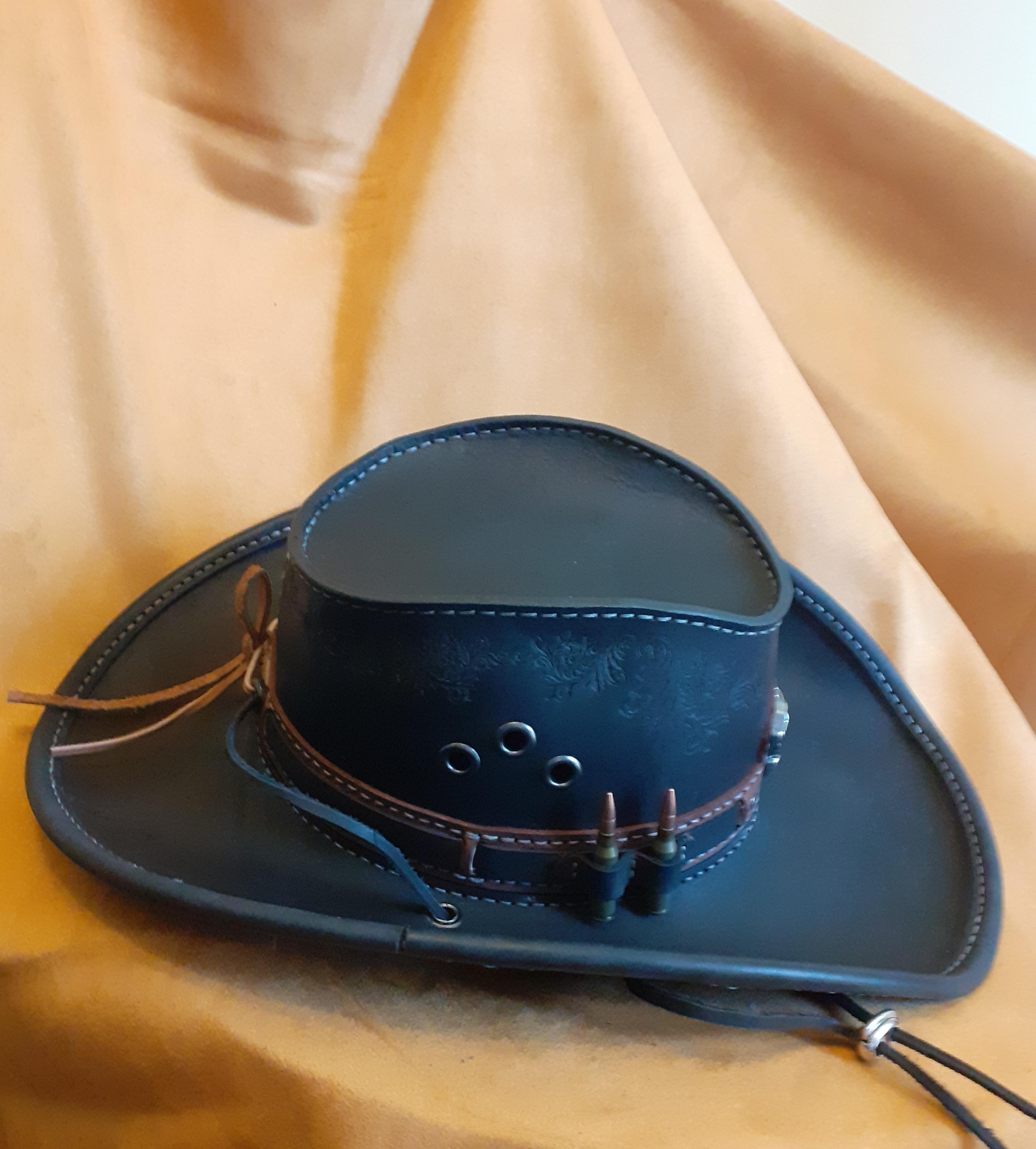 Патроны на ленте, гравировка на тулье. (арт: AVPLHMXP2401) Шляпа с гравировкой на ленте лого на тулье. Кожаная шляпа Pinchet — это воплощение аутентичного вестерн стиля с современными акцентами. Модель в унисекс формате сочетает классические пропорции ковбойской шляпы с изысканными деталями ручной работы. Широкие поля и продуманный силуэт создают выразительный винтажный образ, который легко вписать как в повседневную моду, так и в тематические ансамбли. • Материал: натуральная кожа премиального качества — гарантирует долговечность и комфорт при носке. • Отделка: ручная работа — уникальные швы и текстурные акценты, подчёркивающие ремесленное мастерство. • Декор: индивидуальная лазерная гравировка — придаёт изделию персональность и художественный характер. • Конструкция: корона с открытой кромкой кожи — дизайнерский элемент, демонстрирующий безупречную обработку материала. • Формат: унисекс — подходит для мужчин и женщин, ценящих смелую стилистику вестерна. • Поля: широкие — обеспечивают защиту от солнца и ветра, усиливают драматический силуэт. Для кого эта шляпа? • для поклонников ковбойской эстетики и винтажной моды; • для тех, кто ищет акцентный аксессуар для путешествий, фестивалей или городских прогулок; • для любителей сочетать ретро элементы с современной одеждой; • для участников тематических мероприятий (фотосессии, кинопоказы, костюмированные события). С чем носить? • с кожаными куртками и джинсами — для цельного образа в стиле «Дикий Запад»; • с пальто, тренчами или шерстяными пиджаками — чтобы добавить дерзкий акцент в классический лук; • с повседневными вещами (рубашки, футболки, брюки чинос) — для непринуждённого, но выразительного ансамбля; • с этническими или бохо элементами — для эклектичного сочетания стилей. Почему стоит выбрать Pinchet? • Уникальность: лазерная гравировка и ручная отделка делают каждую шляпу неповторимой.