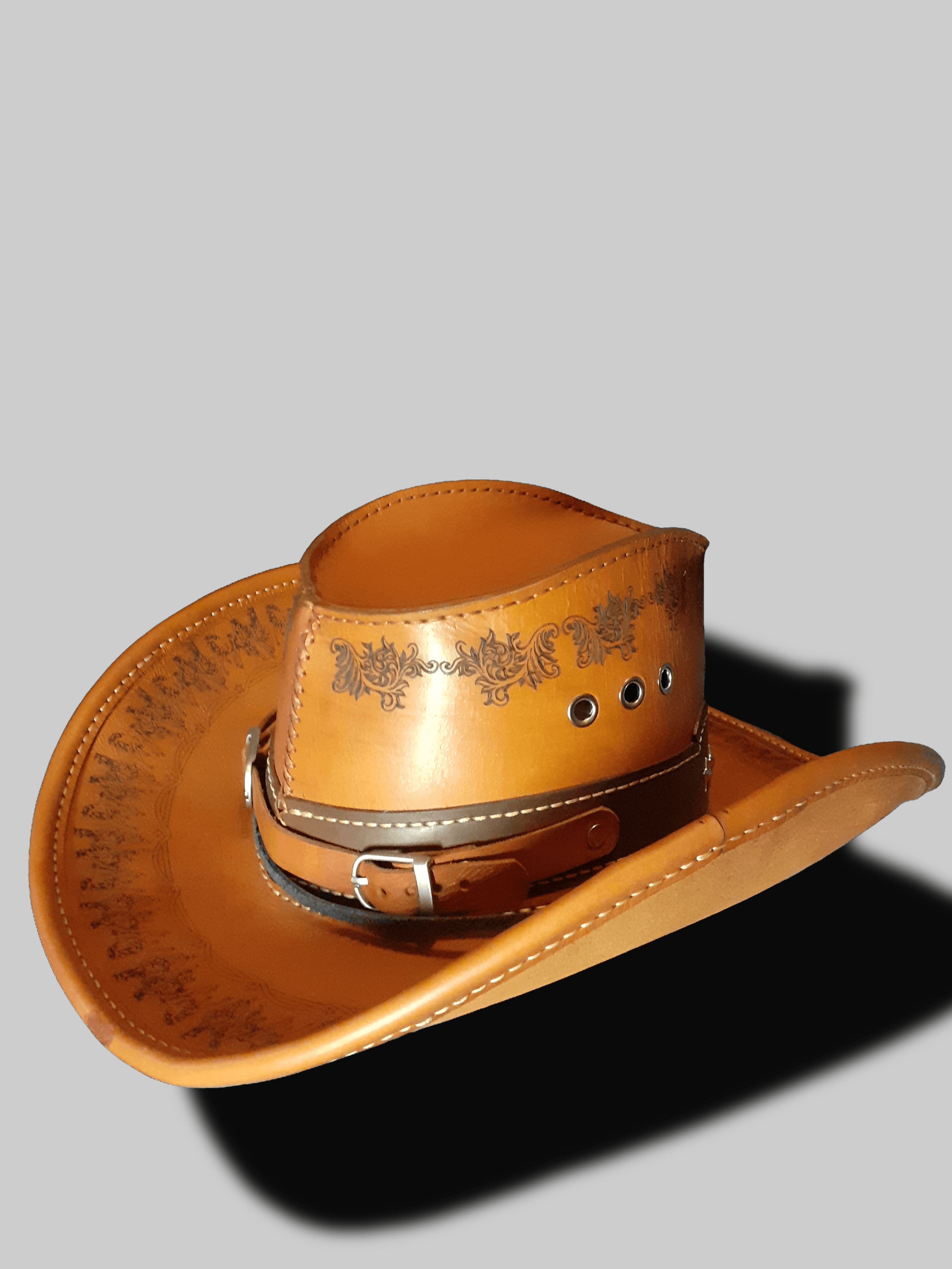 Шляпа (арт: AVPLHMXP2302) с широкой лентой и гравировками орнамента на полях и тулье. Шляпа с гравировкой на ленте лого на тулье. Кожаная шляпа Pinchet — это воплощение аутентичного вестерн стиля с современными акцентами. Модель в унисекс формате сочетает классические пропорции ковбойской шляпы с изысканными деталями ручной работы. Широкие поля и продуманный силуэт создают выразительный винтажный образ, который легко вписать как в повседневную моду, так и в тематические ансамбли. • Материал: натуральная кожа премиального качества — гарантирует долговечность и комфорт при носке. • Отделка: ручная работа — уникальные швы и текстурные акценты, подчёркивающие ремесленное мастерство. • Декор: индивидуальная лазерная гравировка — придаёт изделию персональность и художественный характер. • Конструкция: корона с открытой кромкой кожи — дизайнерский элемент, демонстрирующий безупречную обработку материала. • Формат: унисекс — подходит для мужчин и женщин, ценящих смелую стилистику вестерна. • Поля: широкие — обеспечивают защиту от солнца и ветра, усиливают драматический силуэт. Для кого эта шляпа? • для поклонников ковбойской эстетики и винтажной моды; • для тех, кто ищет акцентный аксессуар для путешествий, фестивалей или городских прогулок; • для любителей сочетать ретро элементы с современной одеждой; • для участников тематических мероприятий (фотосессии, кинопоказы, костюмированные события). С чем носить? • с кожаными куртками и джинсами — для цельного образа в стиле «Дикий Запад»; • с пальто, тренчами или шерстяными пиджаками — чтобы добавить дерзкий акцент в классический лук; • с повседневными вещами (рубашки, футболки, брюки чинос) — для непринуждённого, но выразительного ансамбля; • с этническими или бохо элементами — для эклектичного сочетания стилей. Почему стоит выбрать Pinchet? • Уникальность: лазерная гравировка и ручная отделка делают каждую шляпу неповторимой.